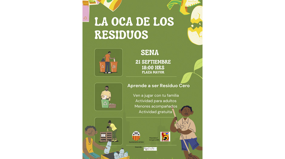 A través de una dinámica divertida y participativa, el Ayuntamiento de Sena dará a sus vecinos y vecinas la oportunidad de aprender a tratar de forma adecuada sus residuos. La actividad, que está subvencionada por la Diputación Provincial de Huesca, tendrá lugar el próximo 21 de septiembre, a las 18.00 horas, en la plaza Mayor.