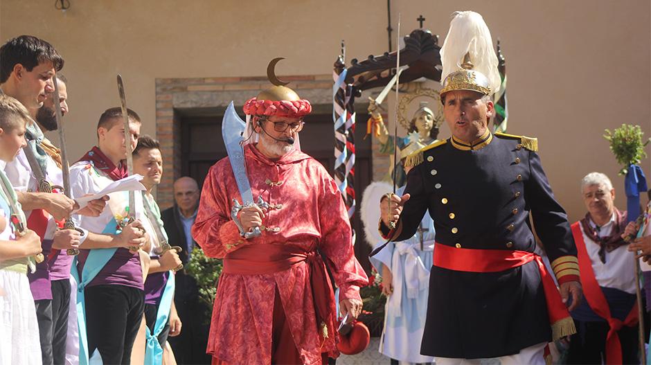 En el centro de la plaza, los danzantes han abierto repertorio con la mudanza de ‘Espada en mano’, derrochando brío y energía, y después, entre otras, han interpretado la Rueda, en la que los volantes han ascendido hasta los hombros de los danzantes entre cruces de espaldas. En el centro, como manda la tradición, se ha situado el Ángel, que ha protagonizado también el enfrentamiento teatral contra el Diablo, junto al mayoral, el rabadán y los generales cristiano y moro.