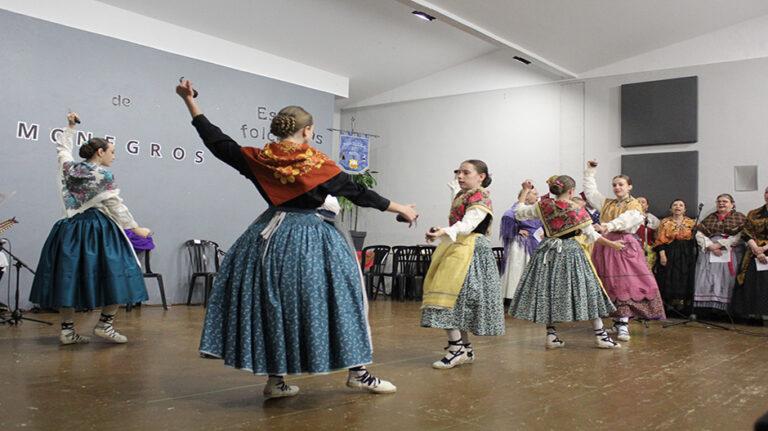 La lluvia ha cambiado el escenario, pero no el espíritu. El IV Encuentro Comarcal de Escuelas Folclóricas de Los Monegros, que ha sido celebrado este domingo en Sena, ha encontrado cobijo en el salón municipal y lo ha convertido en un espacio lleno de música, baile y emoción compartida. Las ocho escuelas participantes han actuado ante un público entregado.