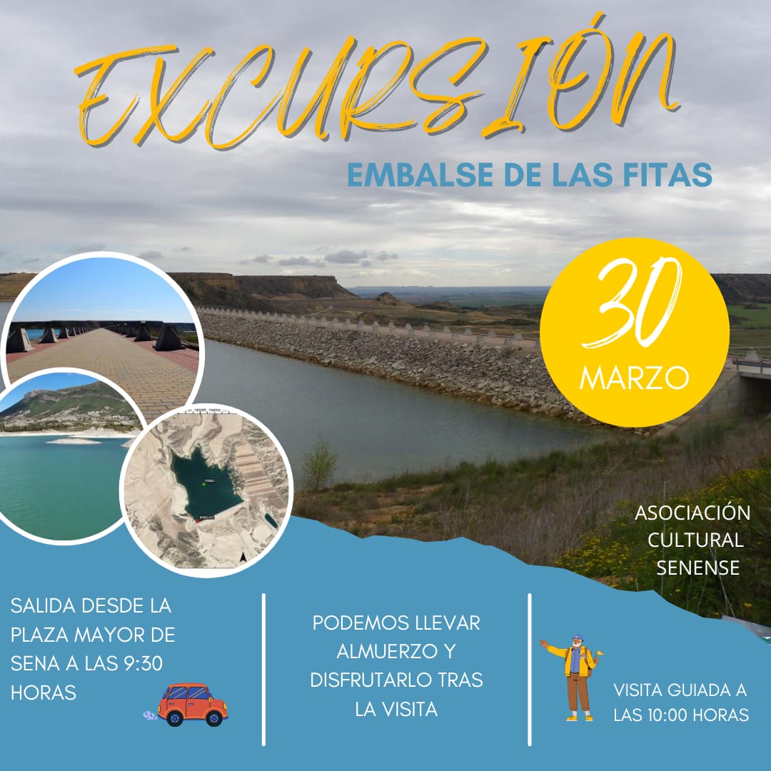 La Asociación Cultural Senense ha organizado una nueva excursión para conocer a fondo uno de los enclaves hidráulicos más importantes del territorio: el embalse de Las Fitas. La actividad tendrá lugar este próximo domingo, 30 de marzo, con salida desde la Plaza Mayor de Sena a las 9.30 horas.