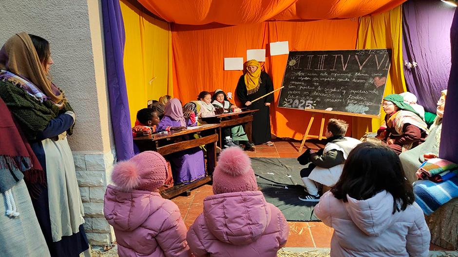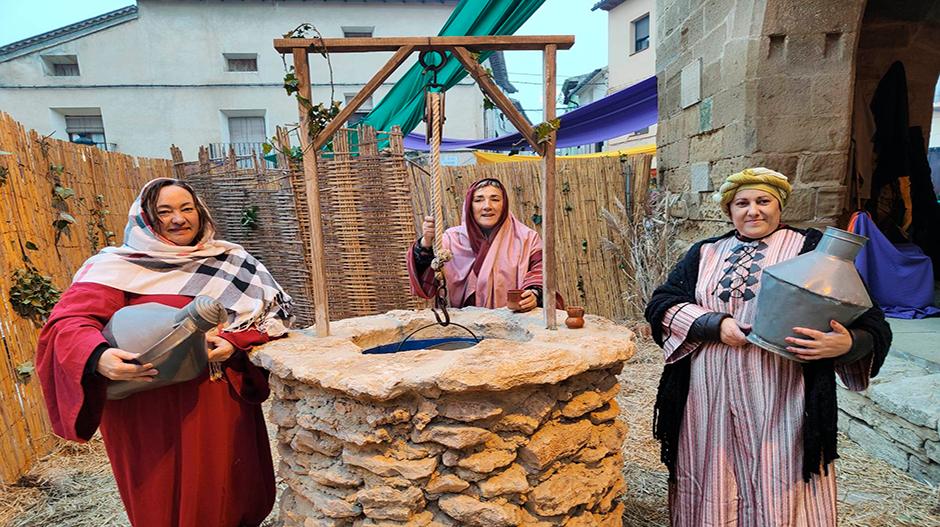 De este escenario a la Anunciación de los Pastores, las guías son las componentes del grupo de las coplillas de Sena. «Todo es música en directo y además, piezas propias de la localidad; tenemos tantas agrupaciones e intérpretes locales que ni siquiera necesitamos de material sonoro adicional; no hay altavoces ni megafonía», explica la profesora de la escuela local de gaita y dulzaina, Nuria Montul. Y tiene toda la razón. La música en vivo es una de las claves del éxito del belén viviente. También lo es la implicación de todo el pueblo.