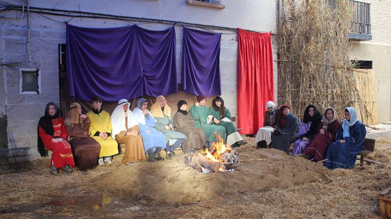 Con alrededor de 200 actores y actrices y una veintena de escenas, el recorrido de los visitantes ha estado dirigido por varios guías. Durante el primer tramo, como es habitual, el público ha seguido los pasos de María y José. La pareja, en busca de posada, ha pasado por el registro, la casa de las hilanderas y el carpintero, donde han encargado una cuna ante el inminente alumbramiento. El momento culminante ha llegado en el mercado, cuando María se ha puesto de parto junto al pozo y finalmente, ha dado a luz en las cuadras ante la imposibilidad de encontrar posada.