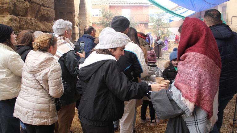 «Me ha encantado; es un montaje original, muy trabajado y, además, con la colaboración e implicación de mucha gente joven y de todo el pueblo». Así ha resumido su experiencia Juan Cuéllar, natural de Fuentepiñel (Segovia), tras visitar el belén viviente de Sena, que este fin de semana ha vuelto a consolidarse como una de las grandes citas navideñas de Los Monegros. Ni siquiera la lluvia del sábado, que obligó a reubicar algunas escenas y a reforzar toldos y cubiertas, ha impedido el desarrollo del montaje, que ha continuado este domingo con gran éxito, acompañado de un tiempo excelente y con todos los pases completos.